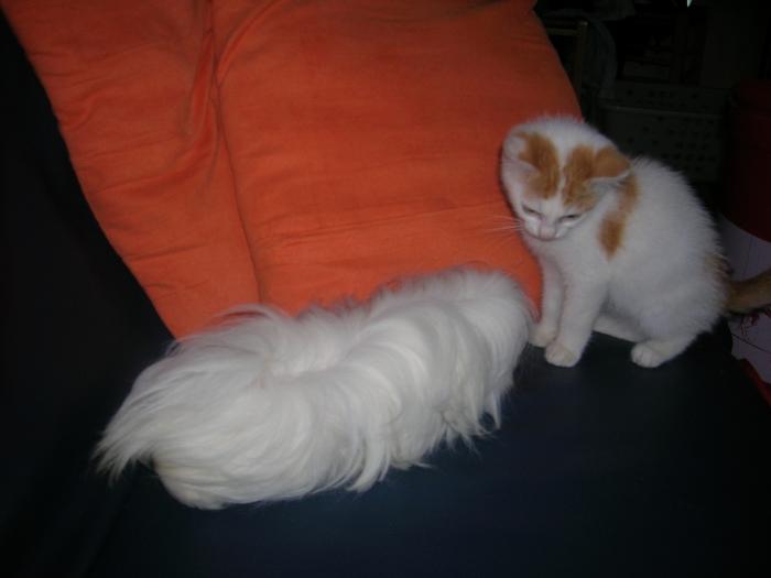 voila une tite photo de notre chaton qui fait la connaissance de notre cobaye...
