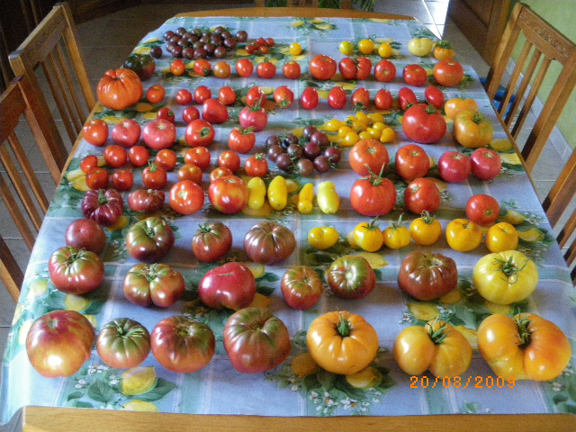 Papyjo, je vais te faire la liste, je sais que tu as des prunes noire, de poire blanches et de jaunes, des marmandes(un peu spéciales) issu d' une manipulation d'un specialiste à la retraite , je n' ai pas toutes celles que tu as, et je peux te dire BRAVO pour cette collection, as-tu fais tes semences, je vais regarder sur mon diaporama, car les noms sont avec les tomates.