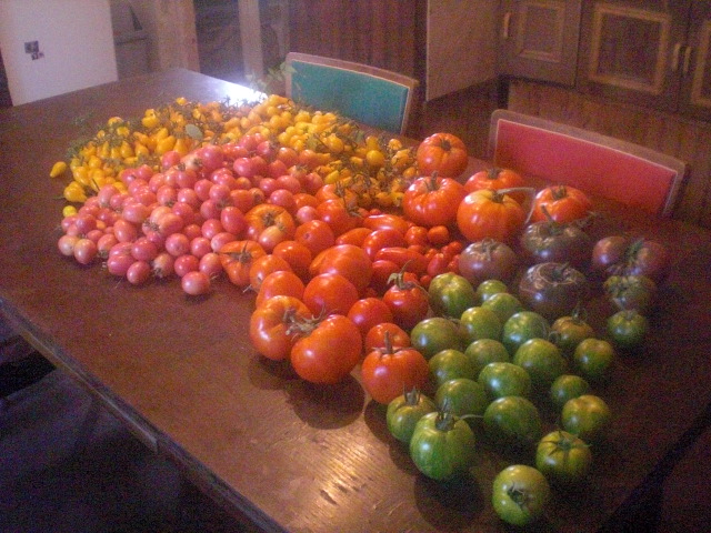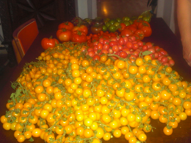 Bonsoir papyjo, tu as vraiment des tomates magnifiques, et tu es quelqu'un de très généreux, un peu comme moi, je te joins une photo de ma récolte du jour.