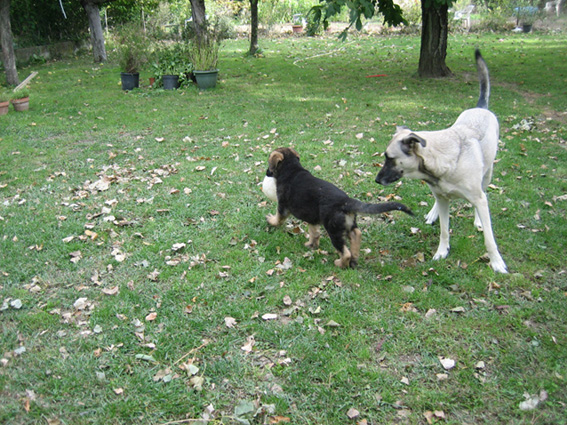 Qq photos d'il y a env 15j (2mois 1/2)! son gd régal: piquer la balle à maya et partir avec!!