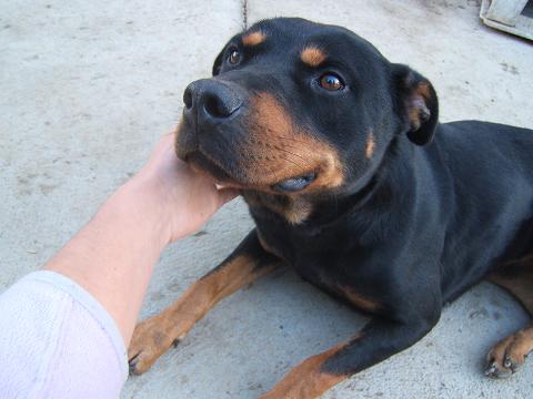 Un chien, ce n'est pas comme un chat et normalement on doit pouvoir voir la trace des côtes (pas trop tout de même) sinon c'est qu'il est en surpoids. En tout cas c'est ce qu'on m'a dit pour le labrador et c'est un peu "bati" pareil que le rotweiler !?