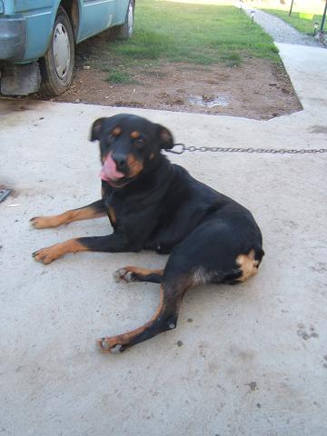Super câline la chienne, mais elle est maigre la pauvre... ils lui ont donné à manger, elle s'est étranglée 3 fois tellement elle dévorait sa gamelle, je ne sais pas si elle en a tous les jours... J'en ai parlé à leur fille, avec qui on s'entend pas mal, qui m'a dit qu'effectivement c'est le grand-père qui s'en occupe, elle va faire attention qu'il n'oublie pas la chienne.