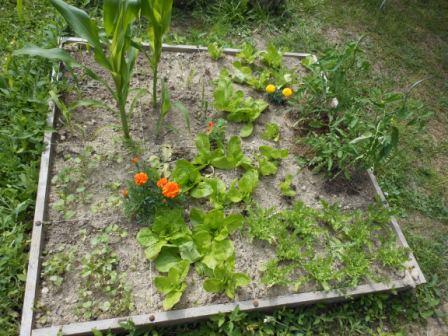 la jungle commence donc a pousser avec chicorée et laitue, tomate, aubergine, courgette, concombre, melon, pasteques, feve (qui ne vont pas tarder a etre cueillies), poivron, phisialys, oignon, ail, echalion, caroote (qui ne sont pas tres bien sortie), poireau, mais, haricot blanc, diverse aromate, tournesol