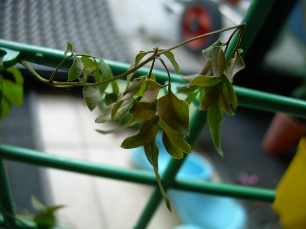 Bonsoir, voilà des photos de la misère actuelle dans laquelle se trouve mon jasmin... son état s'est encore dégradé depuis ce matin quand je l'ai regardé...
