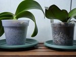 encore une petite question : comme je l'ai déjà dit j'ai rempoté toutes mes orchidées avec le terreau Orchid Focus Repotting Mix, sans tourbe, composé d'écorce calibrée mélangée à des copeaux en fibre de coco. Mon problème est qu'auparavant j'arrosais mes orchidées en faisant couler de l'eau de pluie par le haut en abondance 3 fois de suite puis je les laissais tremper dans une bassine 10-15 min environ mais comme le terreau était composé essentiellement d'écorces de pin (terreau d'origine) cela séchait assez rapidement. Là, c'est sec en surface mais encore humide dans le fond du pot (présence de buée). Je laisse sécher pour l'instant mais je me demande si je ne dois pas me limiter à l'arrosage par le dessus et abandonner le trempage car j'ai peur de faire pourrir mes racines .... ou peut-être ai-je tort ? les racines sont bien vertes en travers du pot .... je ne sais pas trop quoi faire, si vous pouviez me conseiller .....