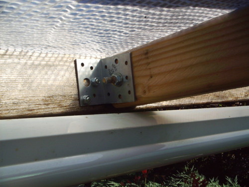 Pour ceux qui serait un peu moins bricoleur, dans le commerce (coté matériaux) on peut trouver des chevrons autoclaves et toute sorte de profiles en acier pré-percés dont on se sert en charpente, il suffit alors d'avoir comme outillage une scie, un marteau, et des clés pour serrer les tirefonds, et enfin une défonceuse pour confectionner les arrondis.