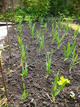 ce soir j'ai remarqué que les mini pousses qui restent en terre forment des nouvelles tiges!! j' ai donc bien fait de repiquer les 40 mini "cormus". apparemment l'ail éléphant se reproduit, régénère, comme cela! à suivre donc!