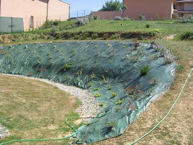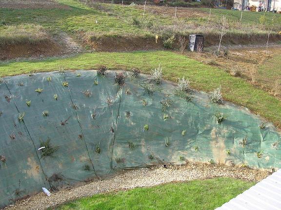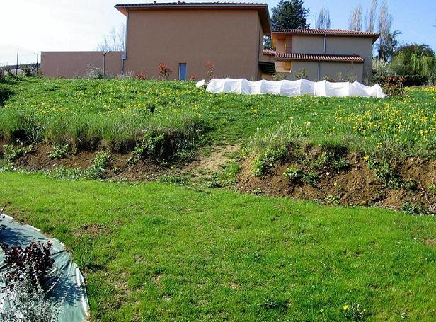 J'ai une autre idée: après le premier talus j'ai un bout de terre de 15 m de long et environ 3 m en profondeur mais la couche de terre agricole est de seulement2 cm (rajouté par nous)