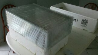 Après avoir d'abord modifié le couvercle de ma petite serre au couvercle en polycarbonate pour qu'il soit plus grand, mon mari m'a fait une autre serre avec socle en bois et bac plastique pour le haut de 33cm ce qui me permettra de garder les plants + longtemps si la t° du sol n'est pas suffisante en attendant la plantation en pleine terre. Je pense que c'est ce que tu cherches valarno