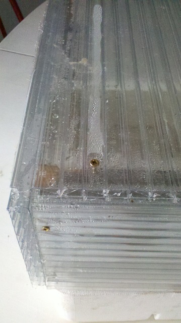 Je vois que tu as pris du poly alvéolé, je rentre des courses et n'en n'ai pas trouvé dans le coin il faudra que j'aille "à la ville" mais il sera moins épais que le tien, celui de ma serre doit être de 4mm et je n'ai pas de pb avec.