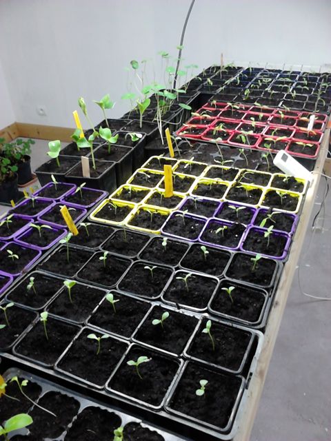 15 jours se sont passés depuis les semis, ça a bien levé dans l'ensemble. Certains les 2 feuilles apparaissent, le repiquage approche !!
