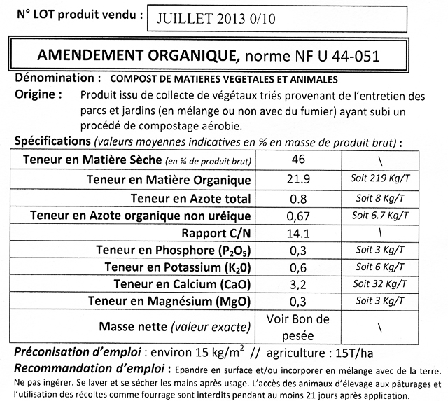 C'est au regard de ces valeurs que l'on peut connaître les apports d'azote, de phosphore etc ... que l'on fait en les épandant au potager.