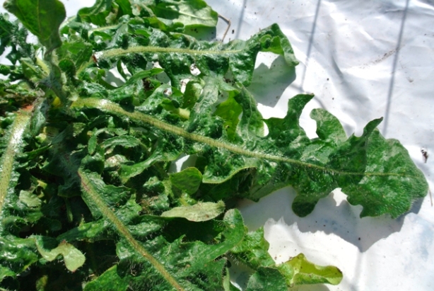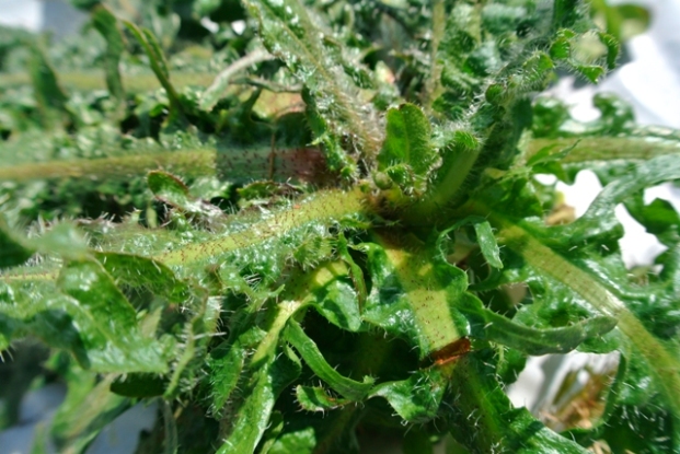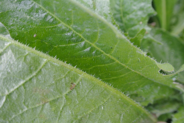 A l'envers de la feuille, la nervure centrale montre des épines ...