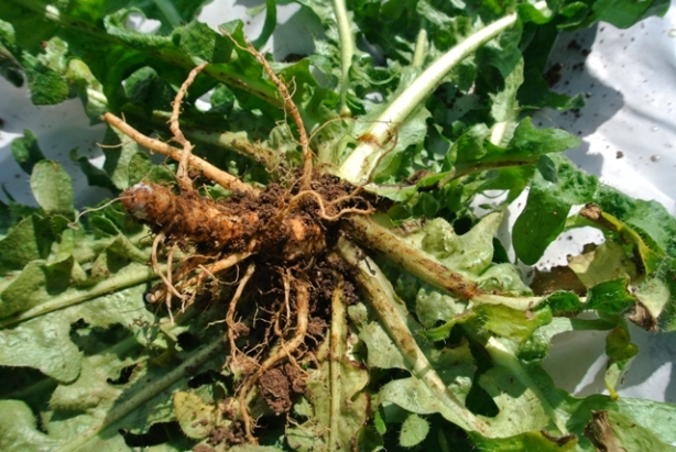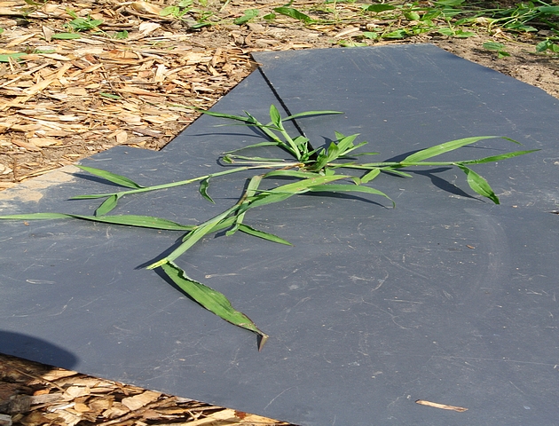 une adventice de grande taille a identifier - La grelinette au second plan donne l'échelle .