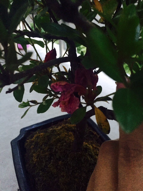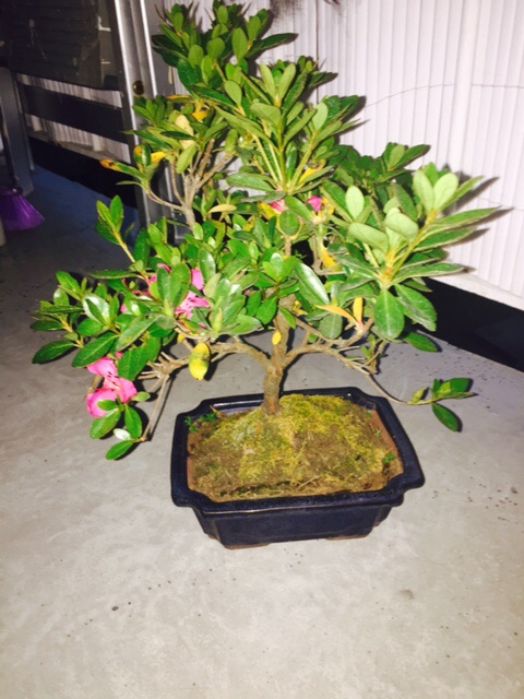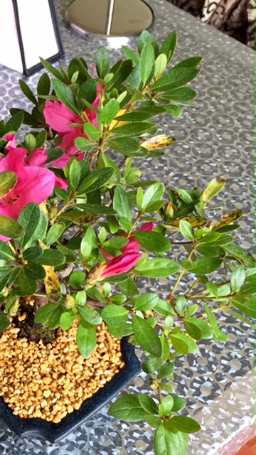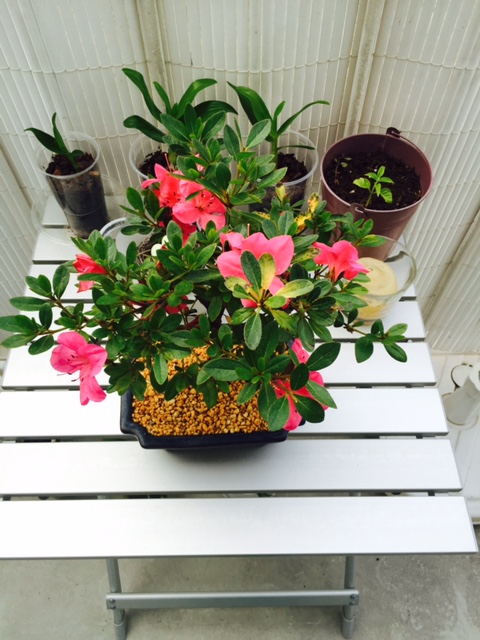 Presque 1 mois après le rempotage voici l'état de mon azalée bonsai.