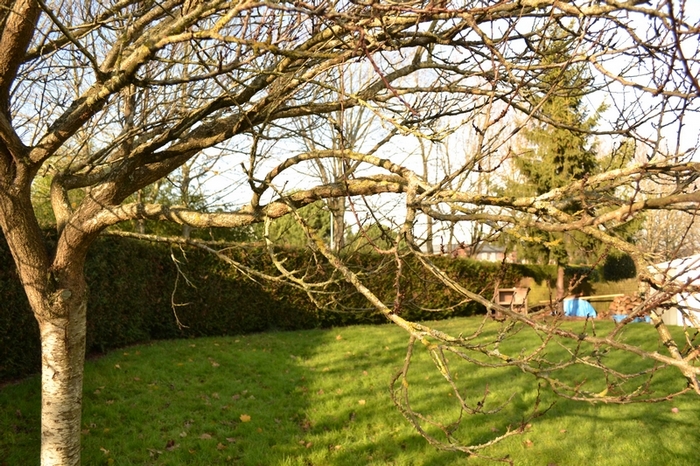 Concernant les arbres qui sont derrière, en effet ils ne sont pas très loin et obscurcissent considérablement l'abricotier mais aussi la maison. J'ai l'intention de m'en occuper aussi (taille voir même abattage).