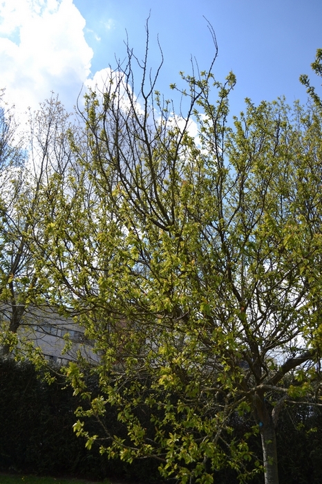 Voici ce qu'il donne aujourd'hui, les photos ont été prises ce soir, le temps n'était pas très clair et les photos sont un peu sombres. Je pense que je vais refaire des photos avec plus de clarté si celles-ci ne passent pas bien. Par ou dois je commencer dans ce dédale de branches et de feuilles.