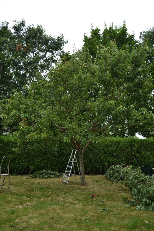 je vous ai mis une nouvelle photo après avoir coupé 2 autres branches pour donner plus de clarté au centre de l'arbre. J'hésite à en couper d'autres avant d'attaquer les coupes pour limiter la hauteur de l'arbre.