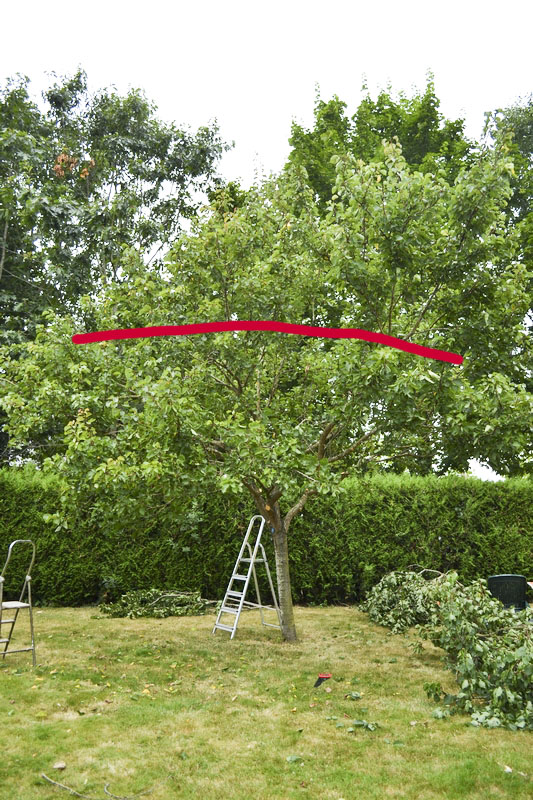 -Une fois taillé aucune branche ne devrait dépasser la ligne rouge.
