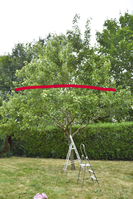 Ah! l'intérieur est plus clair. C'est bien parti. Continue par les branches trop hautes (photos avec trait rouge).