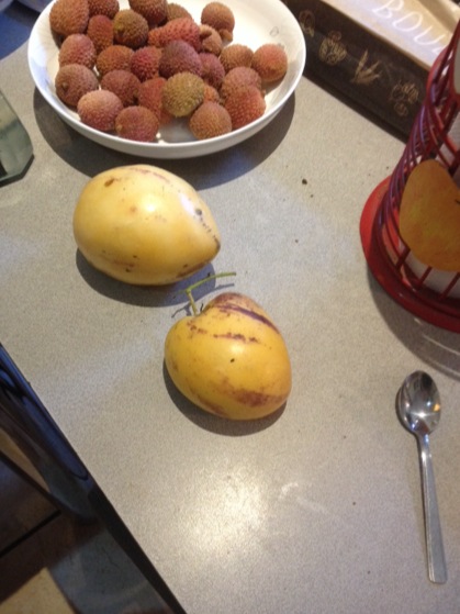 Voici 2 poires melon que j'ai réussi à faire murir dans une pièce lumineuse non chauffée