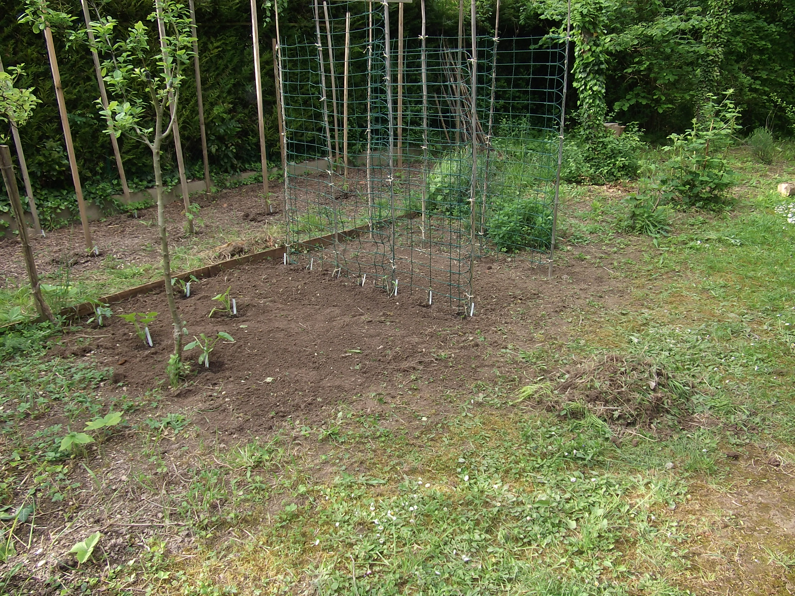 On agrandis petit à petit, cette années il y auras en plus des carrées une petite butte et la planche en U qui sont à l'ombre des arbres (poirier, érable, chêne du voisin,...)