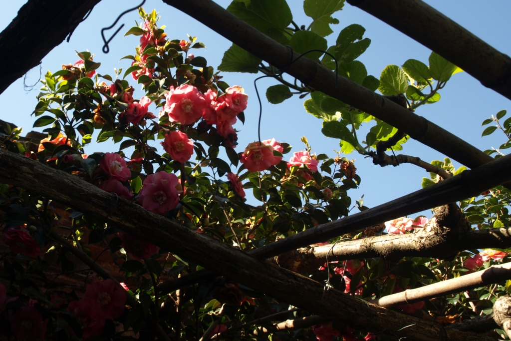 Les camélias ont poussé: ils dépassent maintenant la treille de 2m.