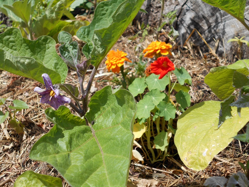 les aubergines et capucines ("de lobb") sont en fleurs.