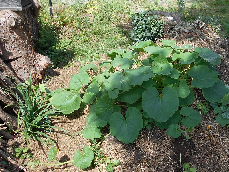 ici grosses chaleurs depuis 3 jours, les potimarrons du tas de compost on l'air d'apprécier, ils grandissent à vive allure.