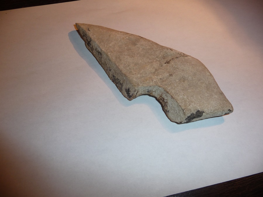 Elle a pu se casser bien sûr, mais sur la foto ou tu l'as en main, on dirait qu'elle est aussi "aiguisée" a droite pour faire une pointe.