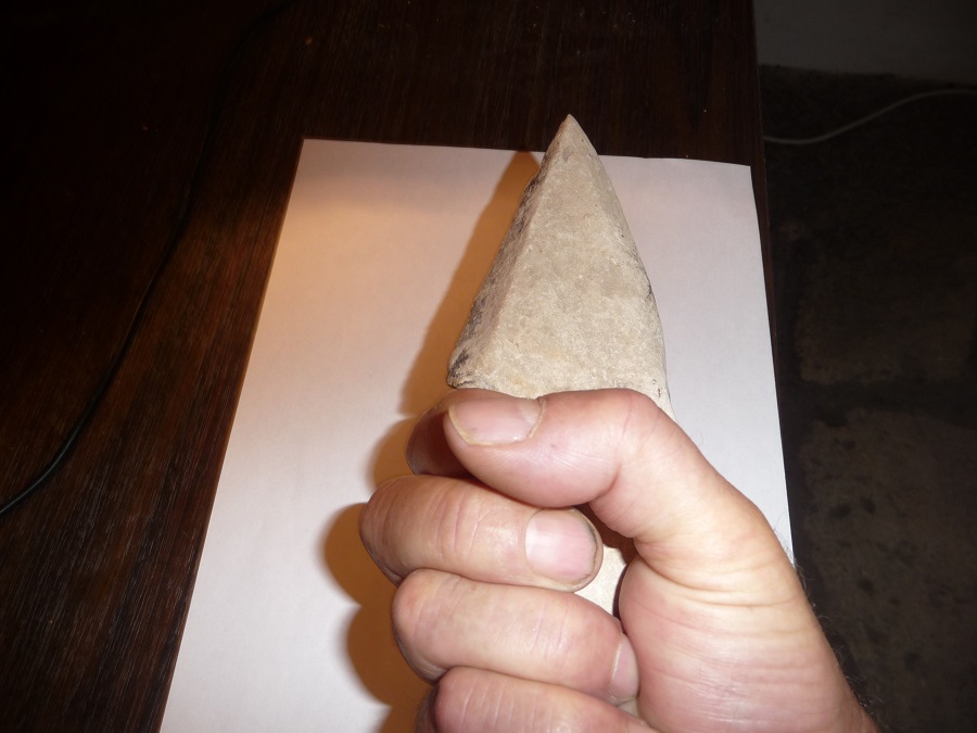 Comme celui ci qui a l'air d'avoir été fabriqué naturellement par l'érosion (je n'ai remarqué aucune trace de taille apparente ) , pourtant il est pointu et a la forme d'une lame qui est biseautée d'un côté :