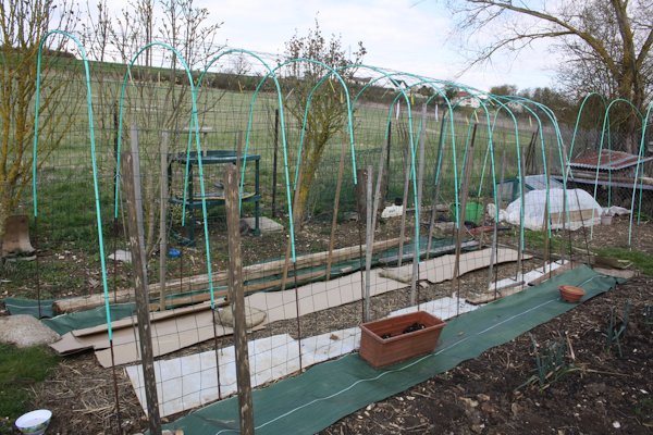 J'aurais bien planté les tomates sous les 2 tunnels mais comme ils sont ouverts je crains qu'il y ai encore quelques gelées.