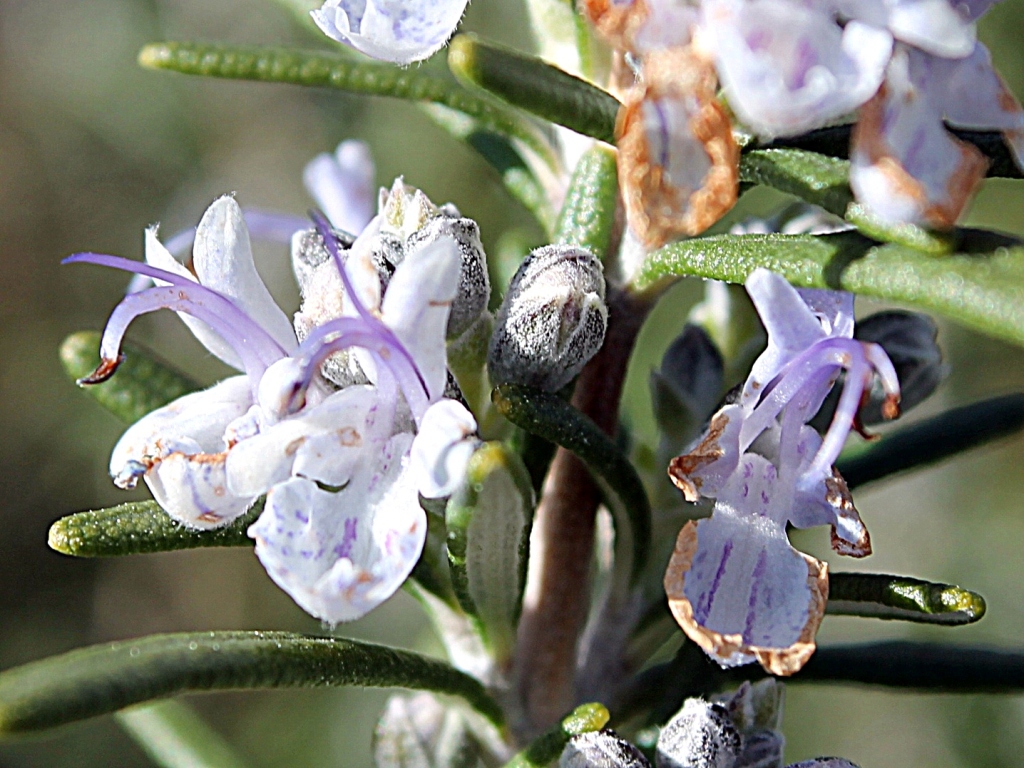 Dans mon jardin, le Romarin offre une floraison timide.