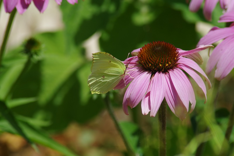 Voici un spécimen femelle de Maniola jurtina qui est atteint par un ami. J'ai l'impression qui il soient en train d'accorder pour aller faire shopping pendant qu'une Pieris rapae les guette! De nombreux Iphiclides podalirius sont de retour dont l'une s'est arrêté pour prendre une collation avec un magnifique Bombus terrestris! Même un spécimen mâle de Gonepteryx rhamni (le même que Marcellini a sur son Echinacea purpurea) semble s'être bien trouvée et il est revenu à nous faire visite. Seul un papillon, l'Amata (Syntomis) phegea, a dédaigné la Buddleja et s'est installé sur un Calycanthus floridus.