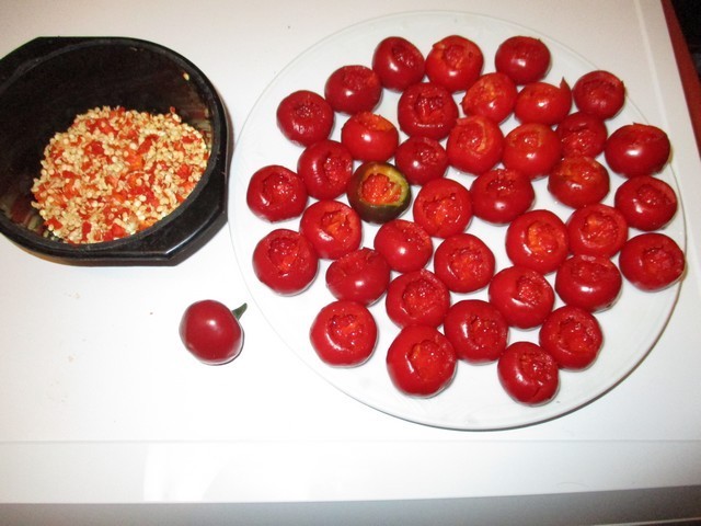 Ceux que j'ai farcis étaient bien plus formés mais j'ai enlevé toutes les graines et la membrane qui les tenait. De plus j'ai appris depuis peu que l'huile diluait la capsaïcine. Et dernier test, j'ai tout travaillé sans protection des mains et à la fin j'ai goûté mes doigts.... absolument pas piquant (à peine)![]()