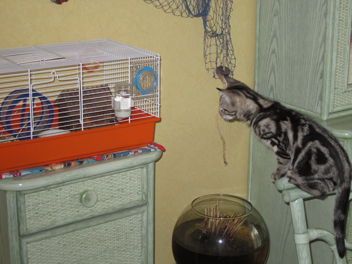 Je vous partage un peu d'histoire du mien arrivé à la maison en décembre 2011 avec comme chemin d'intégration un joli sapin et un hamster qui l'ont bien diverti. Et aussi sa gamelle d'eau qu'il n'a jamais quitté depuis qu'il la découvert.