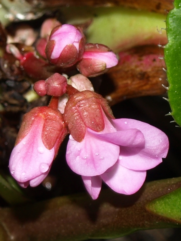 Premières fleurs pour le Bergenia.