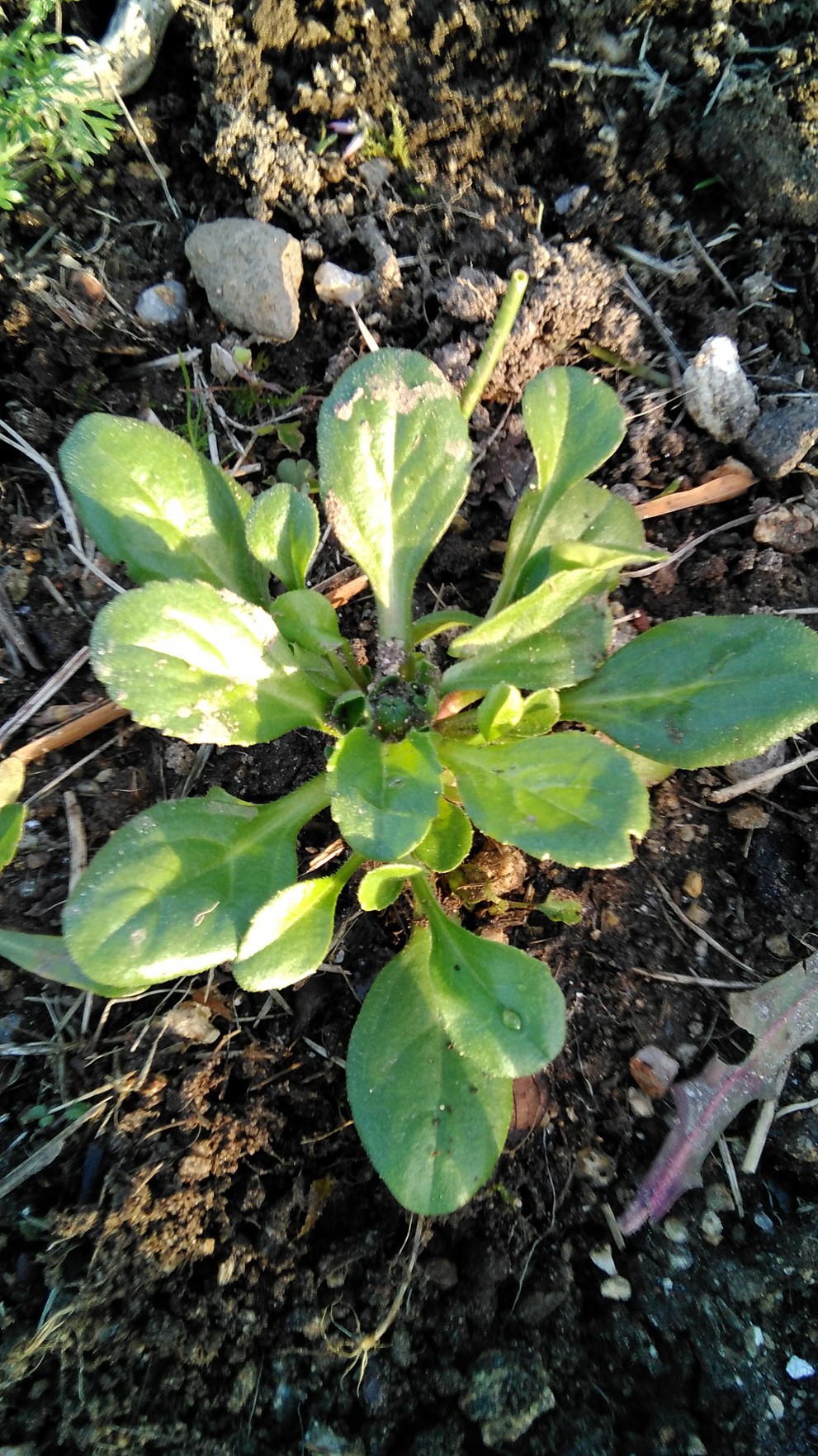 Dimanche ensoleillé. J'ai fait un peu de nettoyage ! J'ai trouvé une plante que je soupçonne être de la mâche mais sans conviction. Vous en pensez quoi ? J'en avais semé mais je ne suis plus sûre du lieu...