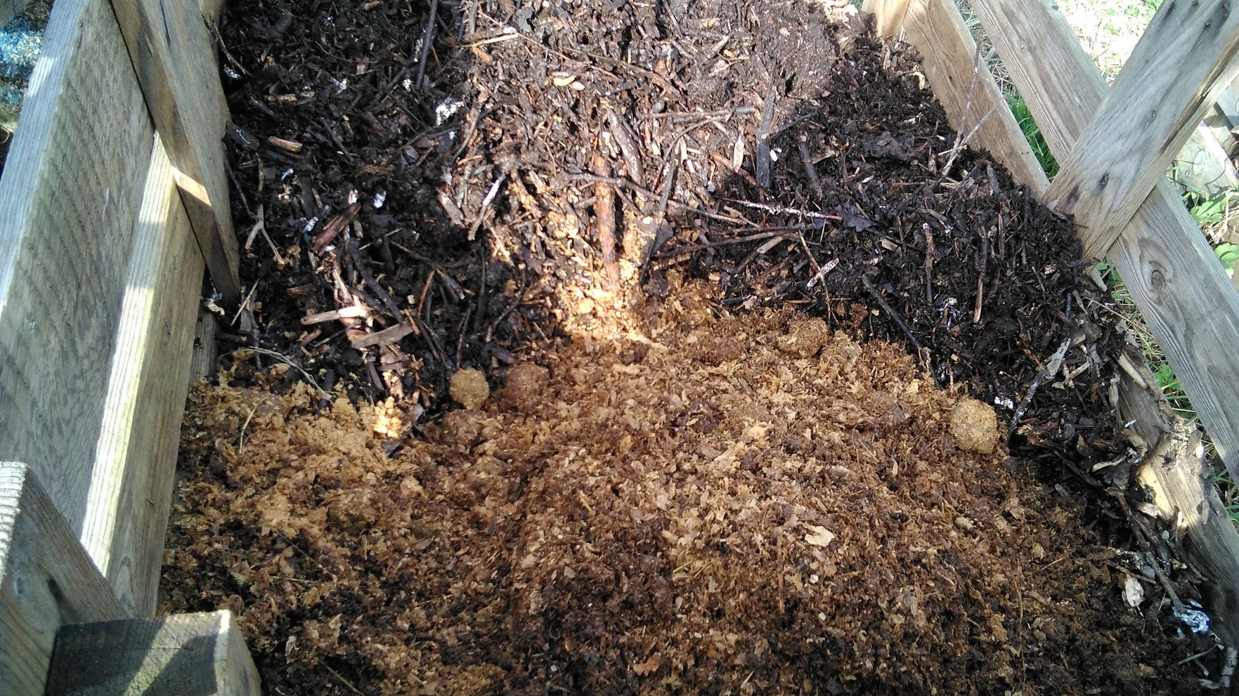 Finalement, j'ai changé de programme, j'ai vidé une partie du compost, le fumier mis a l'automne était a demi composter je l'ai mis là où je vais mettre mes patates dans quelques jours. Et j'en ai aussi mis la ou irons les tomates, je vais couvrir de tonte d'ici demain. Il va faire sec toute la semaine !
