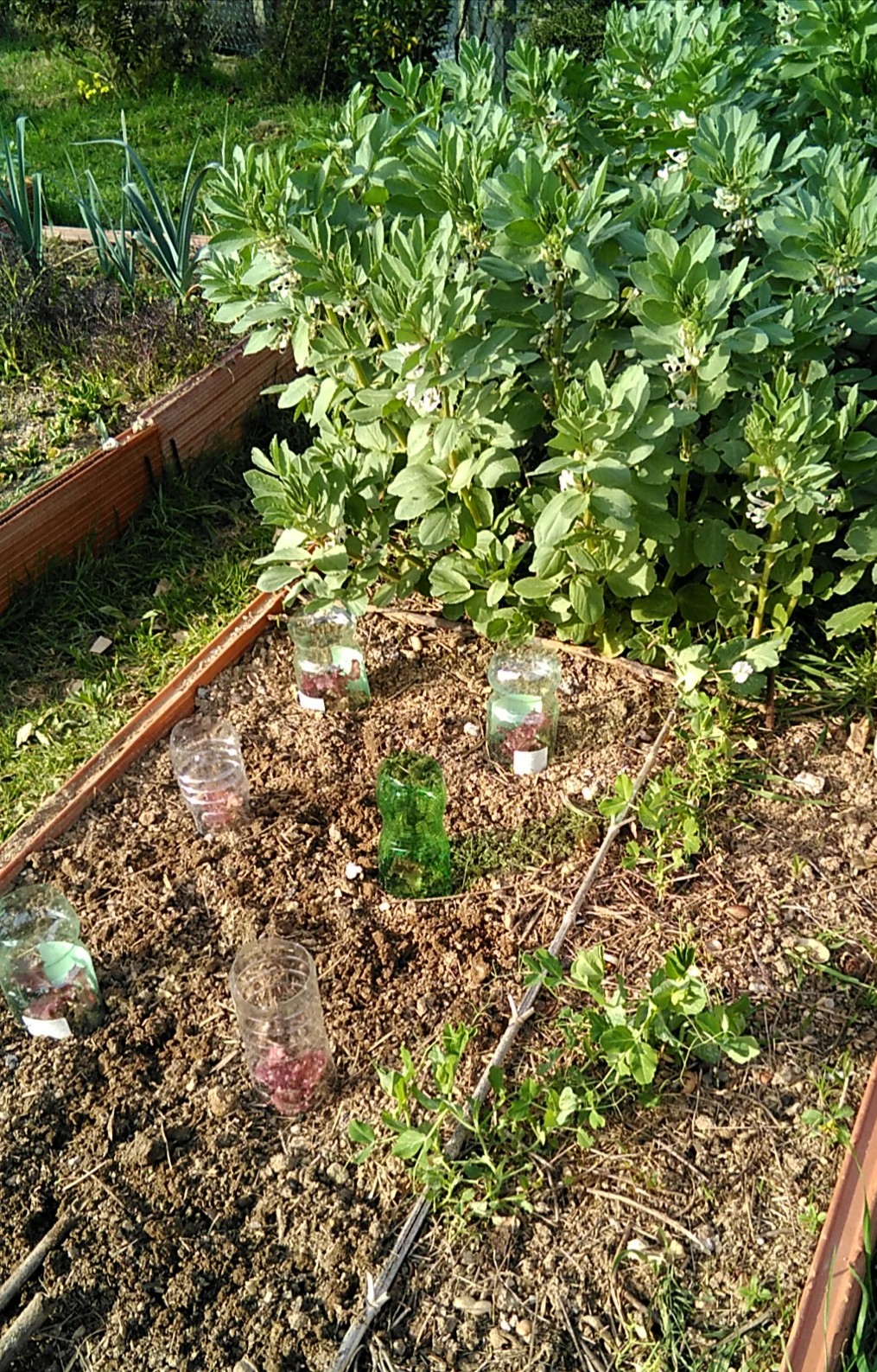 Quelle avance tu as sur moi pour les fèves ! Bravo ! Pourquoi mets-tu des bouteilles sur tes salades ?
