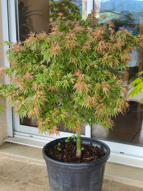 premier érable que j'ai acheté en 2018, je l'ai mis en pleine terre le printemps dernier. Je suis toujours aussi fan, pour un "nain" c'est un des plus poussants. Sa plantation en pleine terre n'a pas l'air de l'avoir dérangé, parfois après la plantation ils mettent longtemps à s 'installer et à refaire des pousses (comme mon skeeter's broom et sangokaku mais c'était des sujets plus gros)