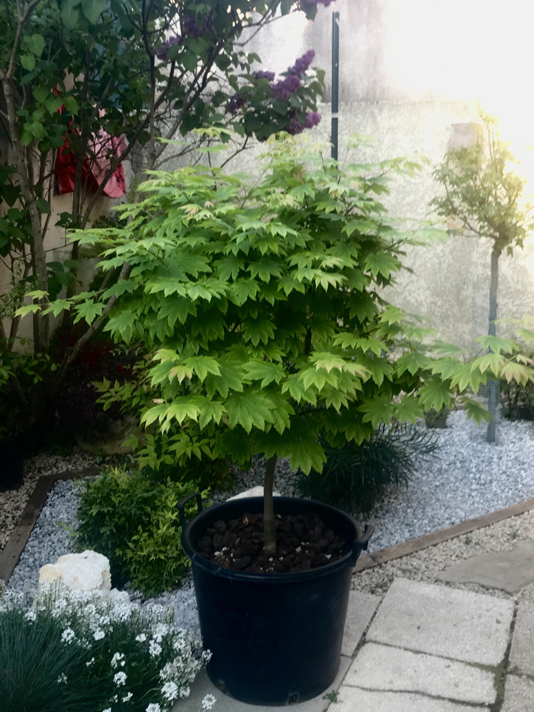 **Les Acer japonicum aiment un sol assez acide (plus acide que les autres érables du Japon). Il faudrait préparer un trou assez large et le remplir d’un mélange drainant (terreau 40%, grosses écorces de pin 40%, 10% de terre de bruyère vraie soit un sac et 10% de tourbe blonde en miettes).