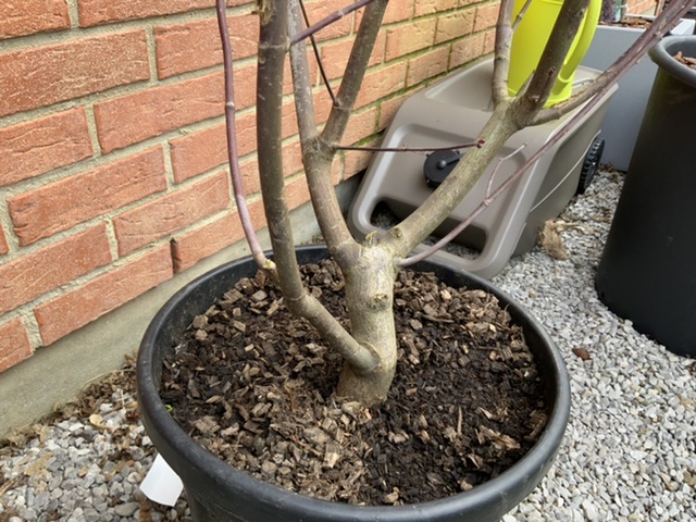 Une fois la branche trop basse coupée au raz du tronc, il restera 2 branches principales qui se divisent rapidement chacune en deux , ce qui fera au moins 4 branches et peut-être 5. C’est suffisant pour le développement d’un vitifolium.