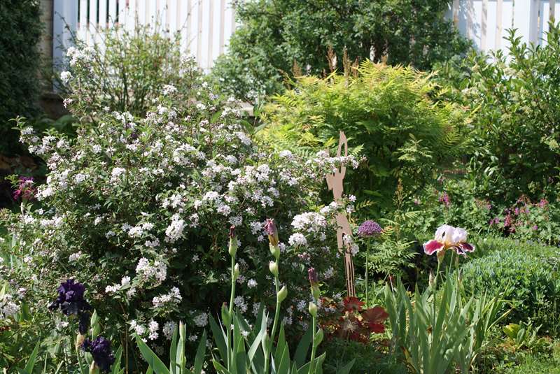 Elle est entourée par les impatiens de Balfour, des astilbes et des fraises des bois. Chacun vit sa vie.