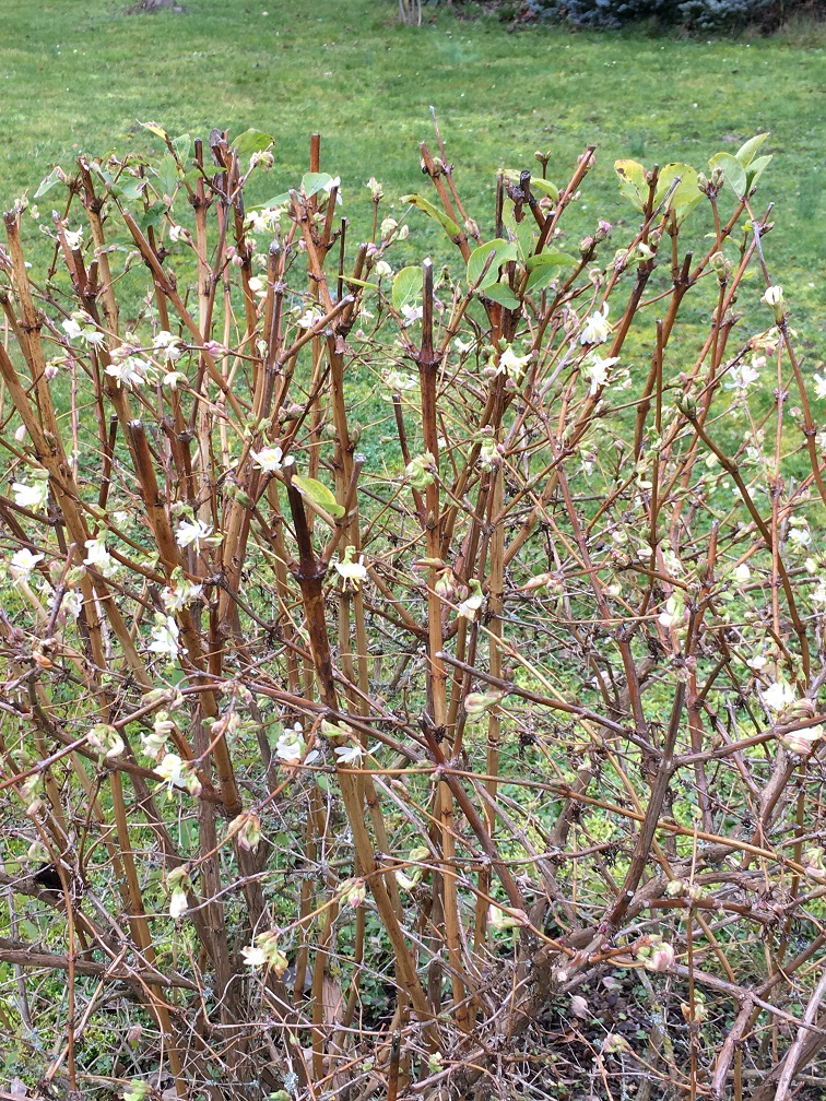 Bien que j'avais montré mon Lonicera Fragrantissima qui avait commencé à fleurir assez tôt...