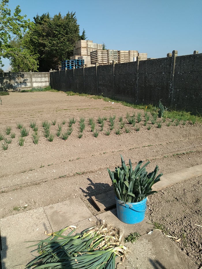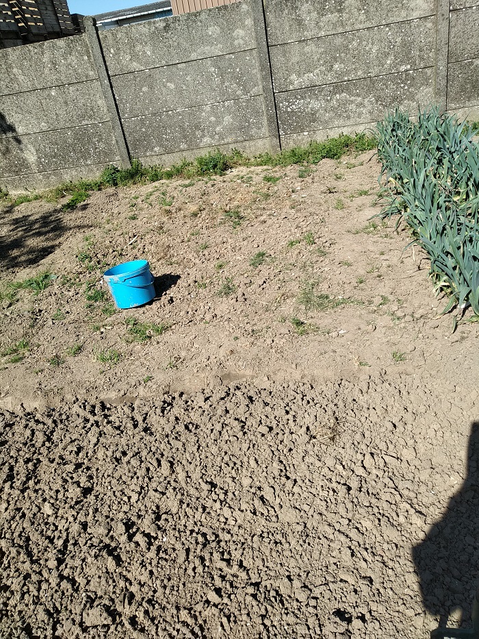 Au petit potager arrachage des poireaux ,bêchage et préparation de la surface pour un semi de haricot