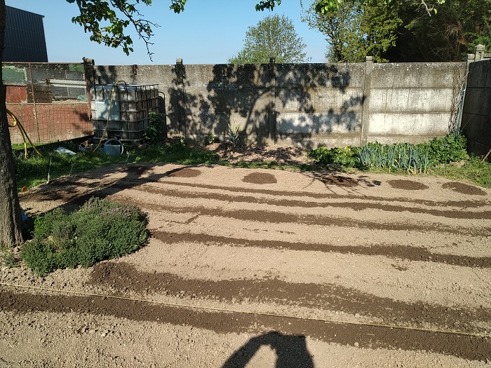 Grand potager ce matin semi de haricot et de courge en pleine terre .La hardiesse dans l'exécution fait souvent réussir les entreprises les plus téméraires
