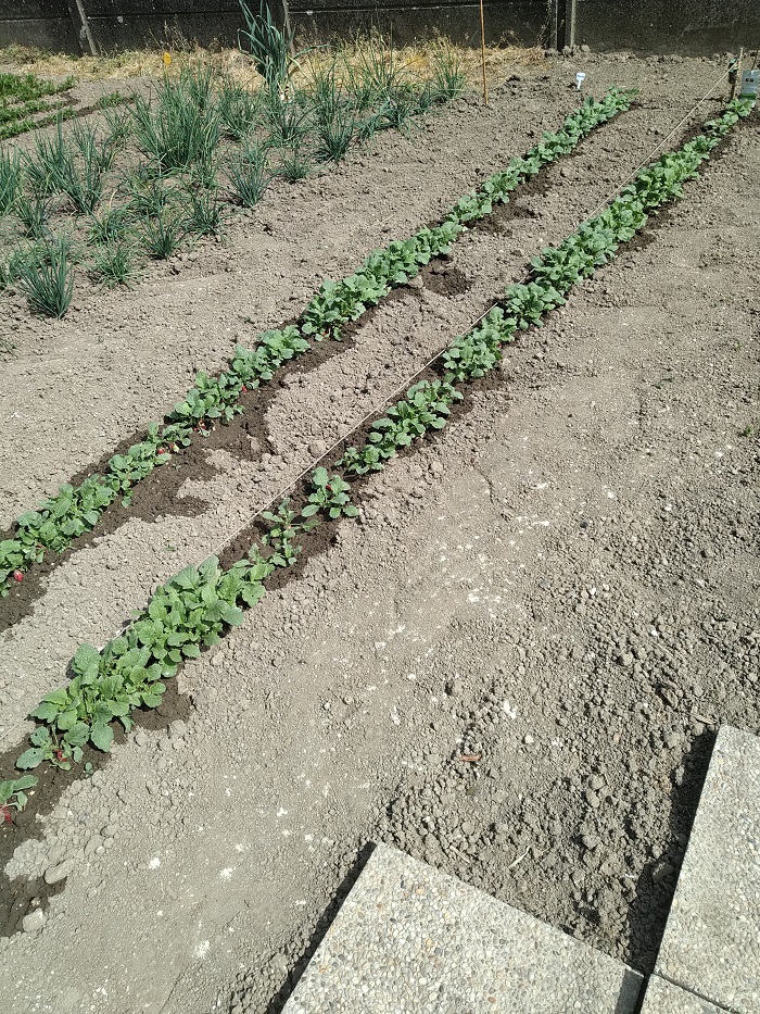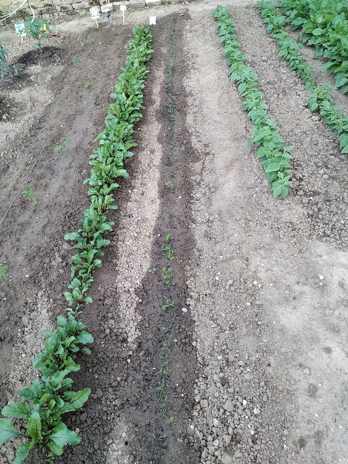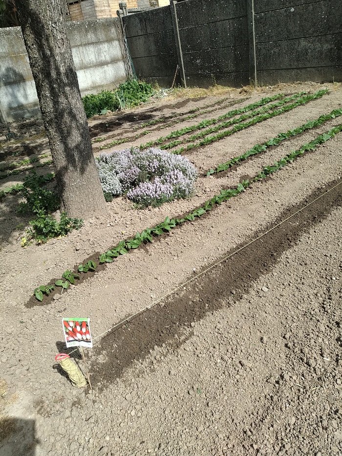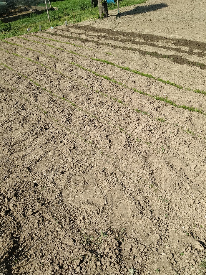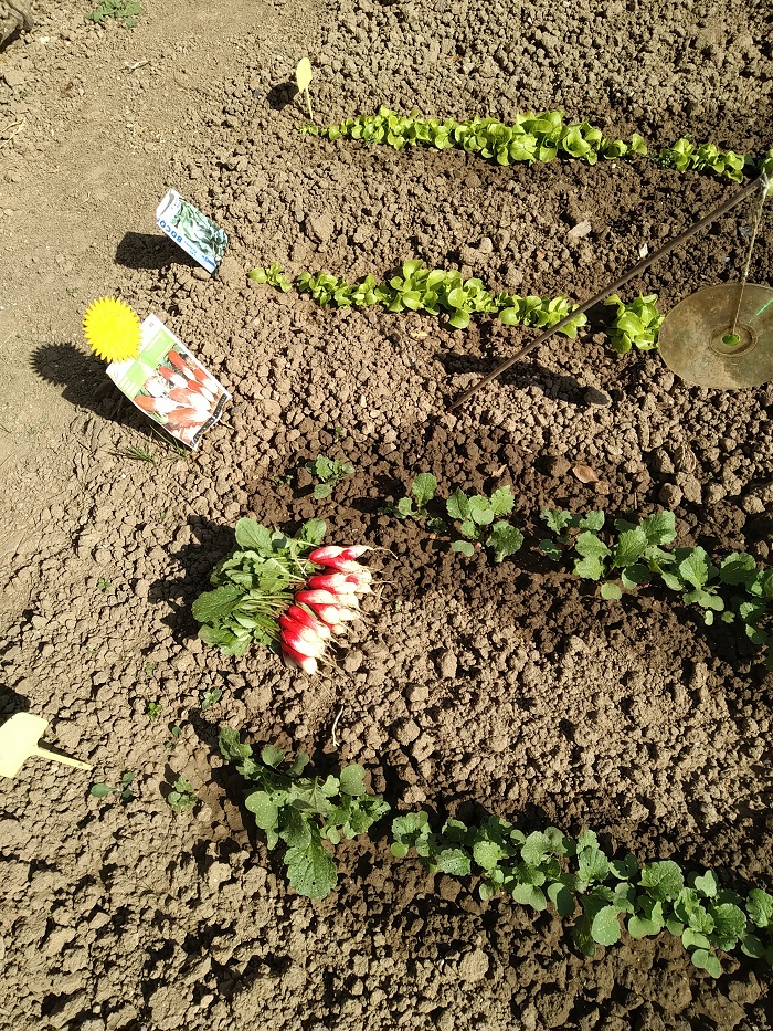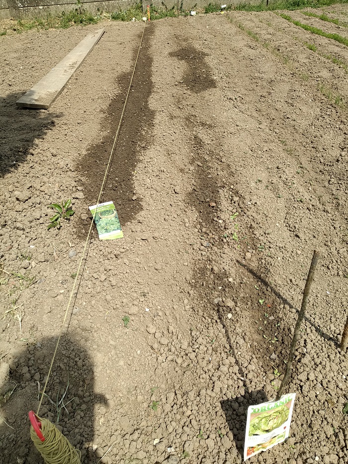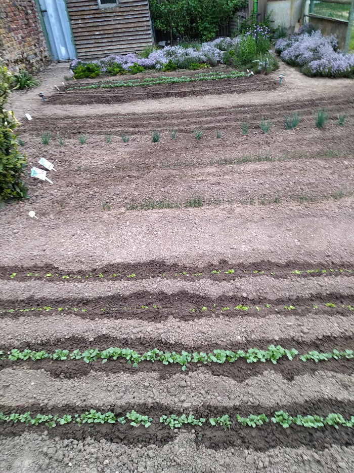 Ce matin au grand potager j'ai semé une route de radis et deux routes de navets