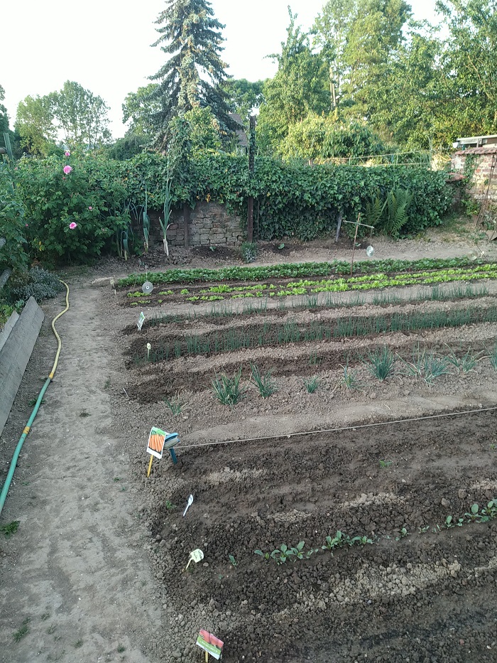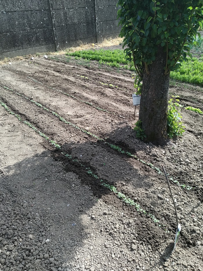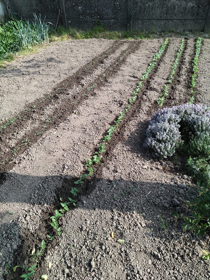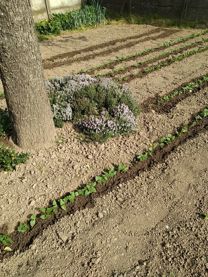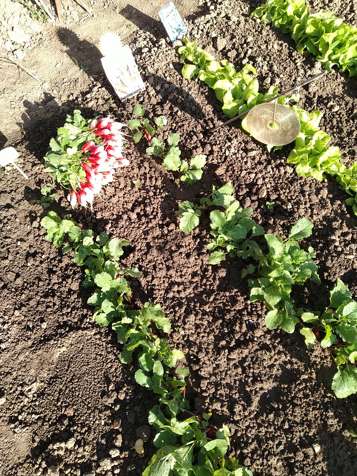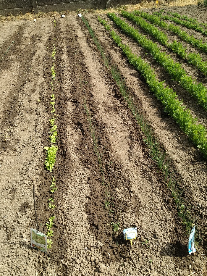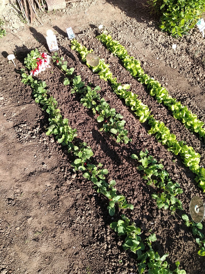 Ce matin au grand potager j'ai semé une route de radis et deux routes de navets