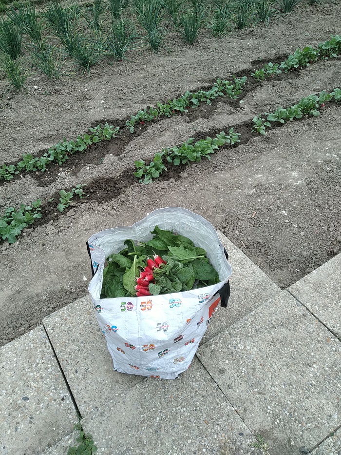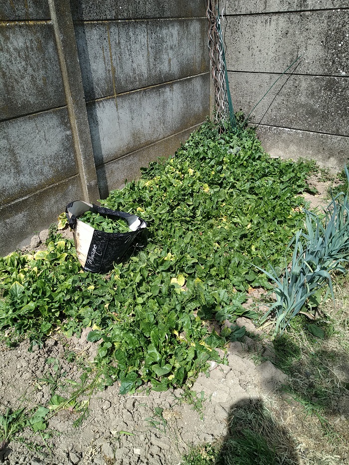 Au grand potager dernière cueillette d'épinards et un semi de laitue feuille de chêne